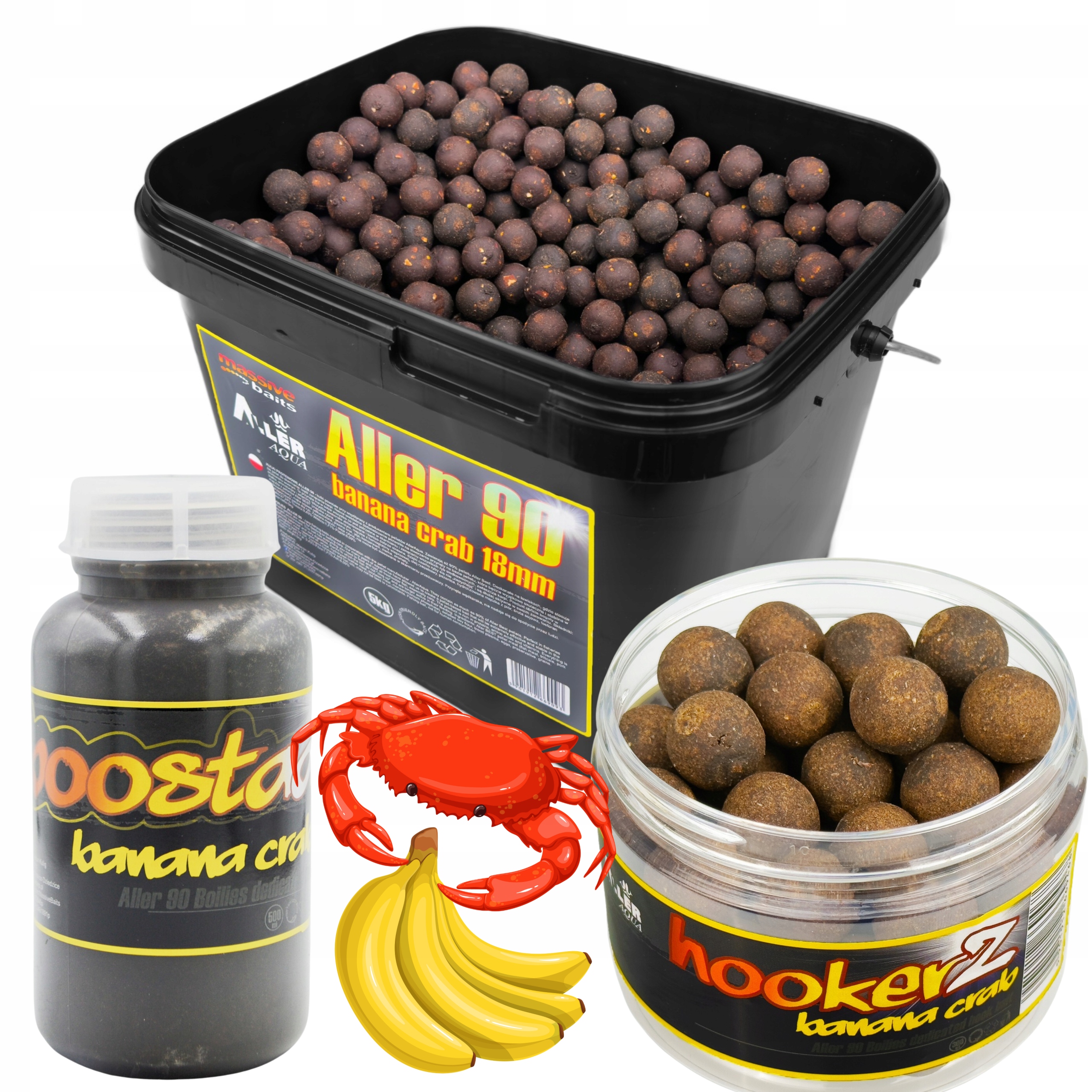 ALLER 90- KULKI KARPIOWE 5kg + HOOKERZ + BOOSTER Massive Baits BANAN CRAB