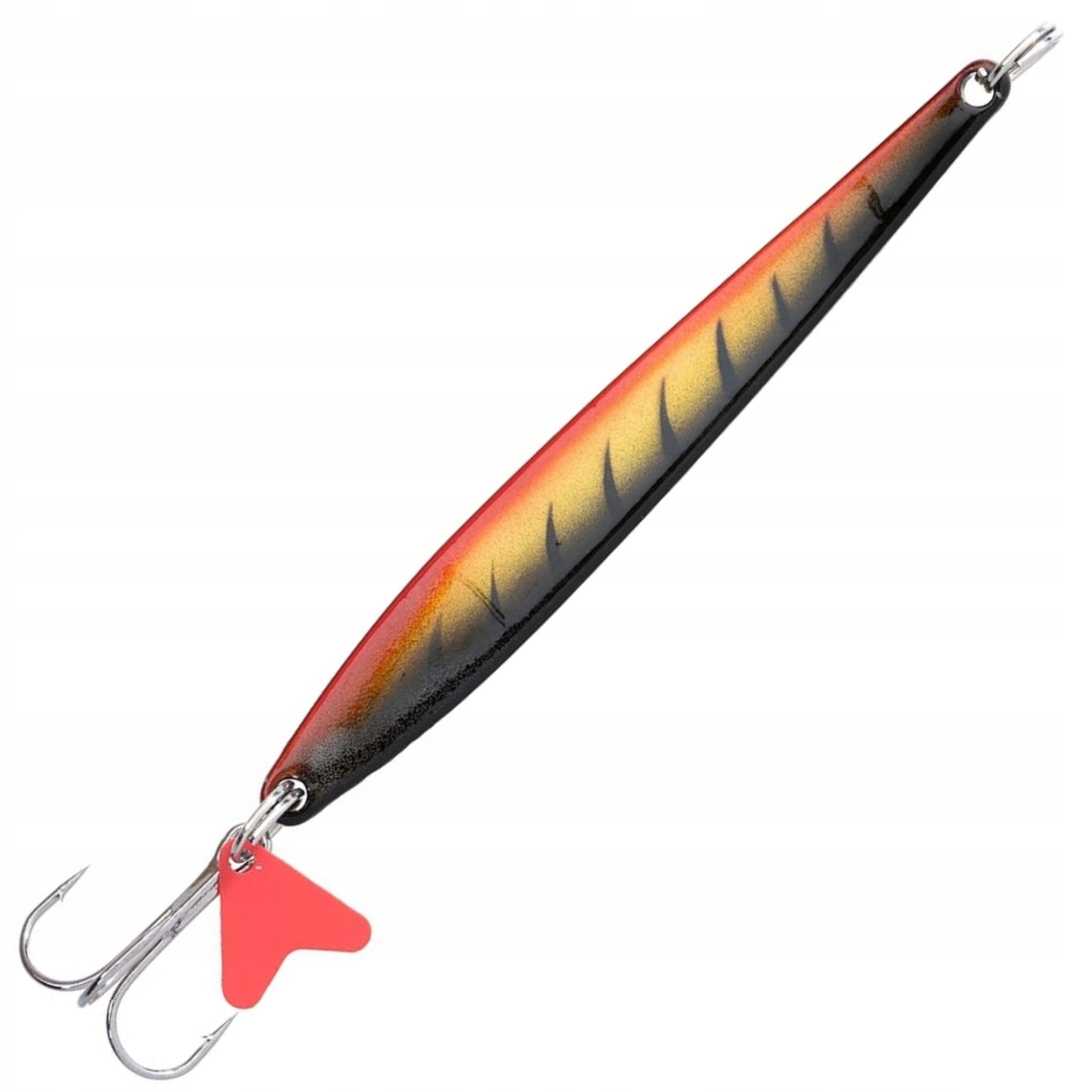Długie, wąskie błystki wahadłowe. Zalecamy prowadzenie błystek skokami.