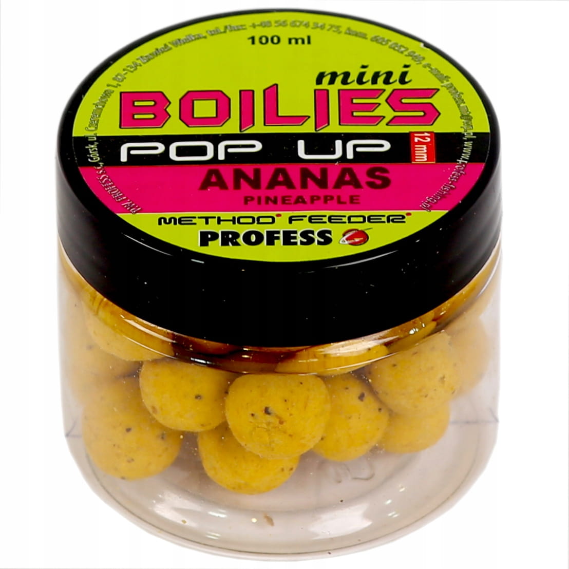 Profess MINI boilies POP-UP to seria pływających kulek o średnicy 12mm.