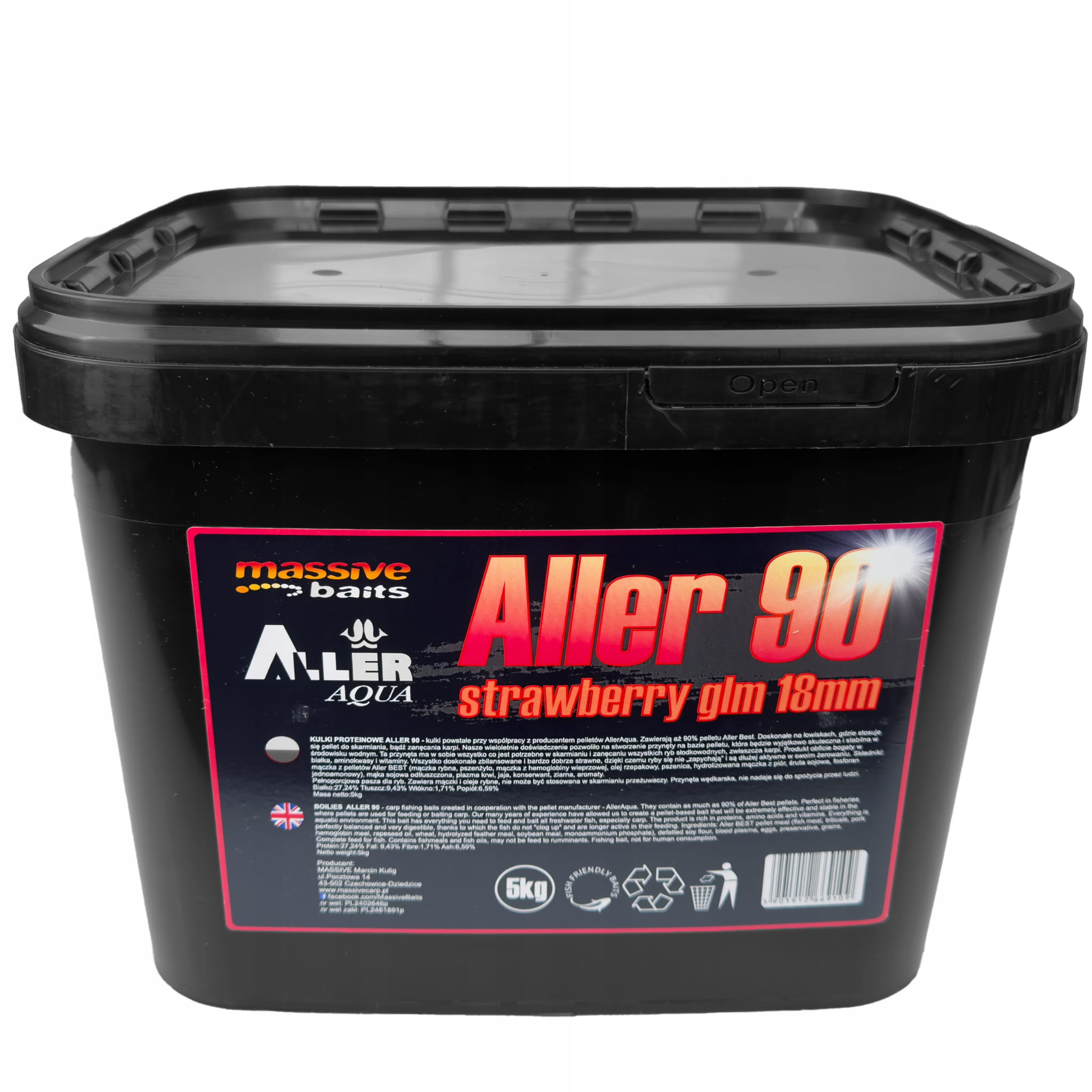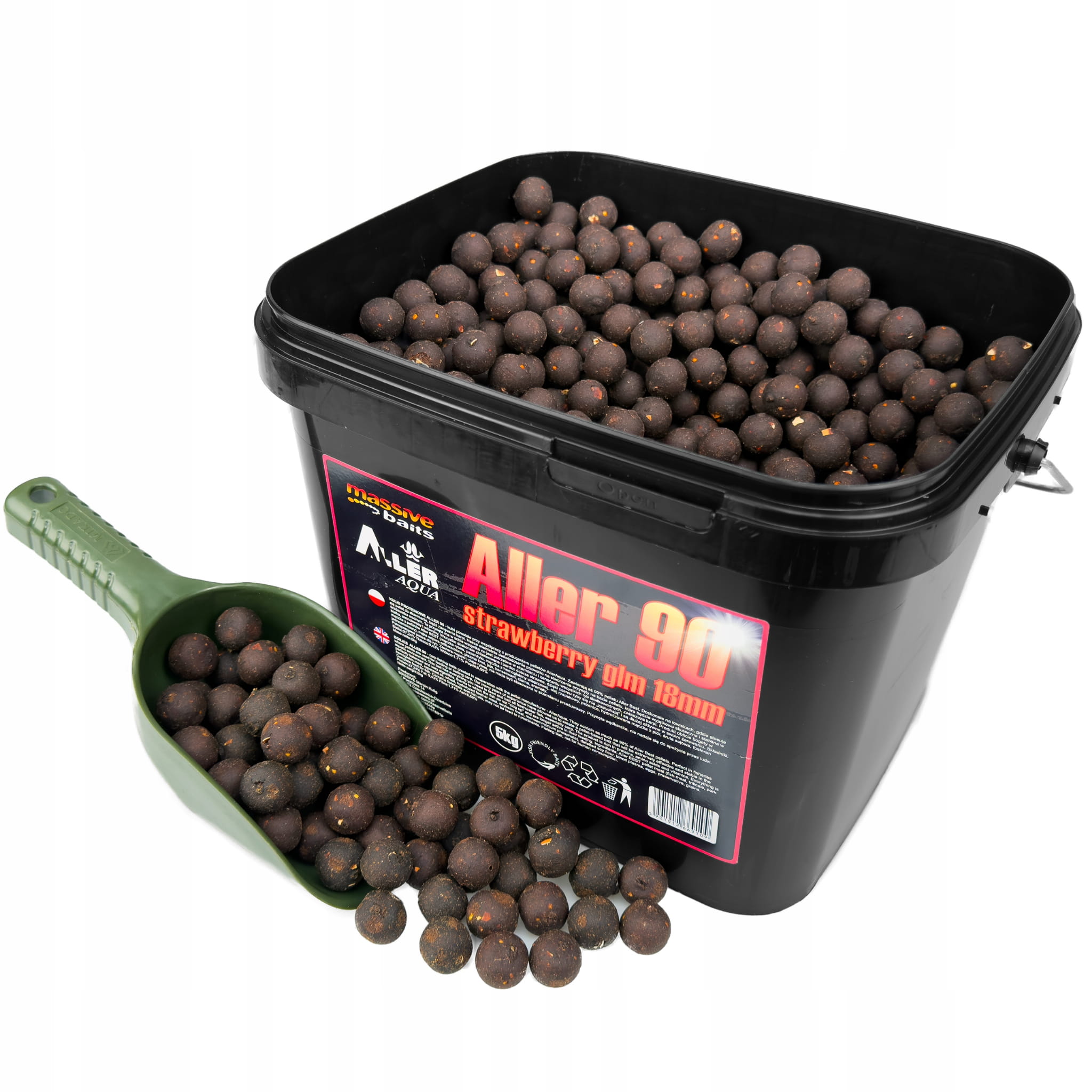 Kulki proteinowe 18mm MASSIVE BAITS ALLER 90 5kg - STRAWBERRY / TRUSKAWKA