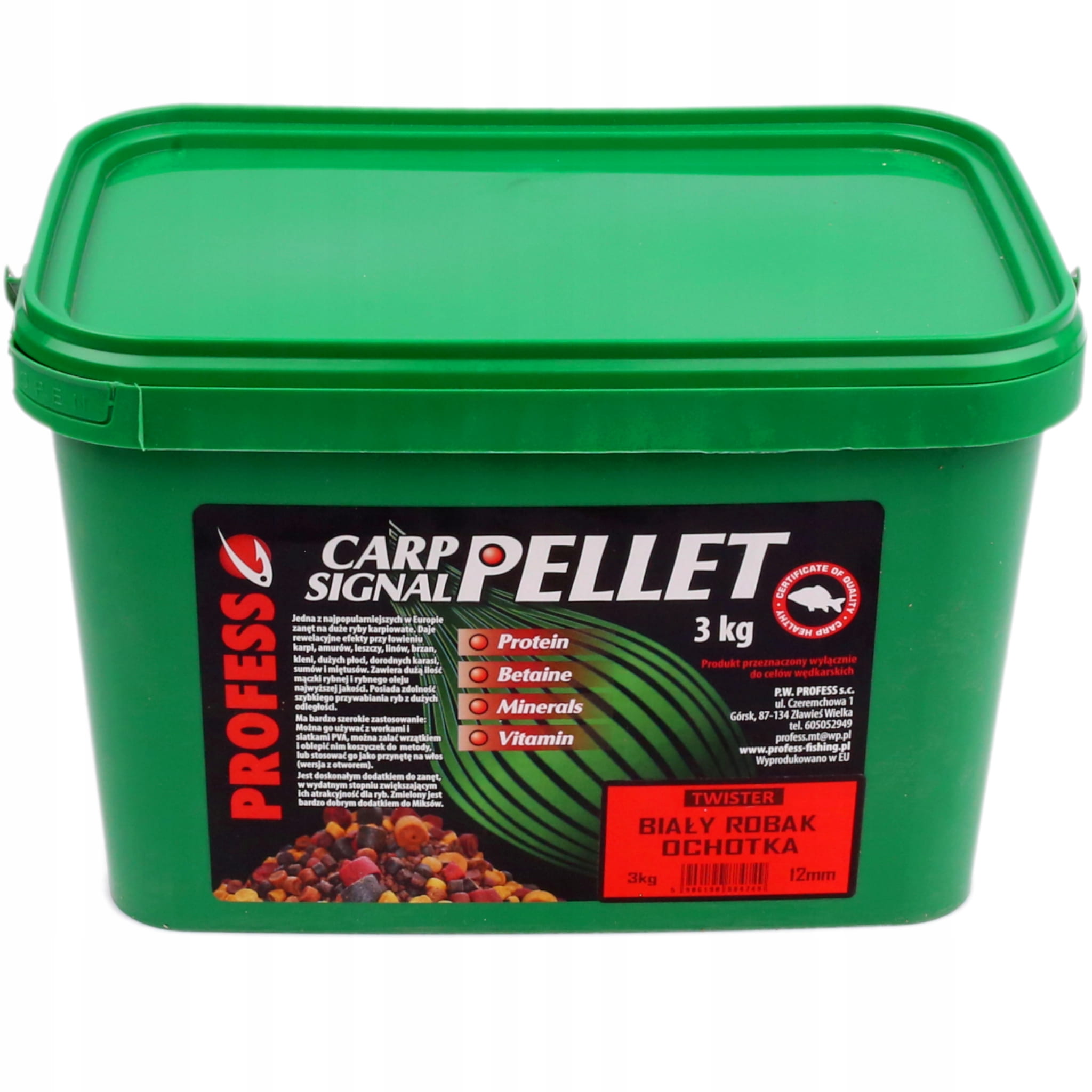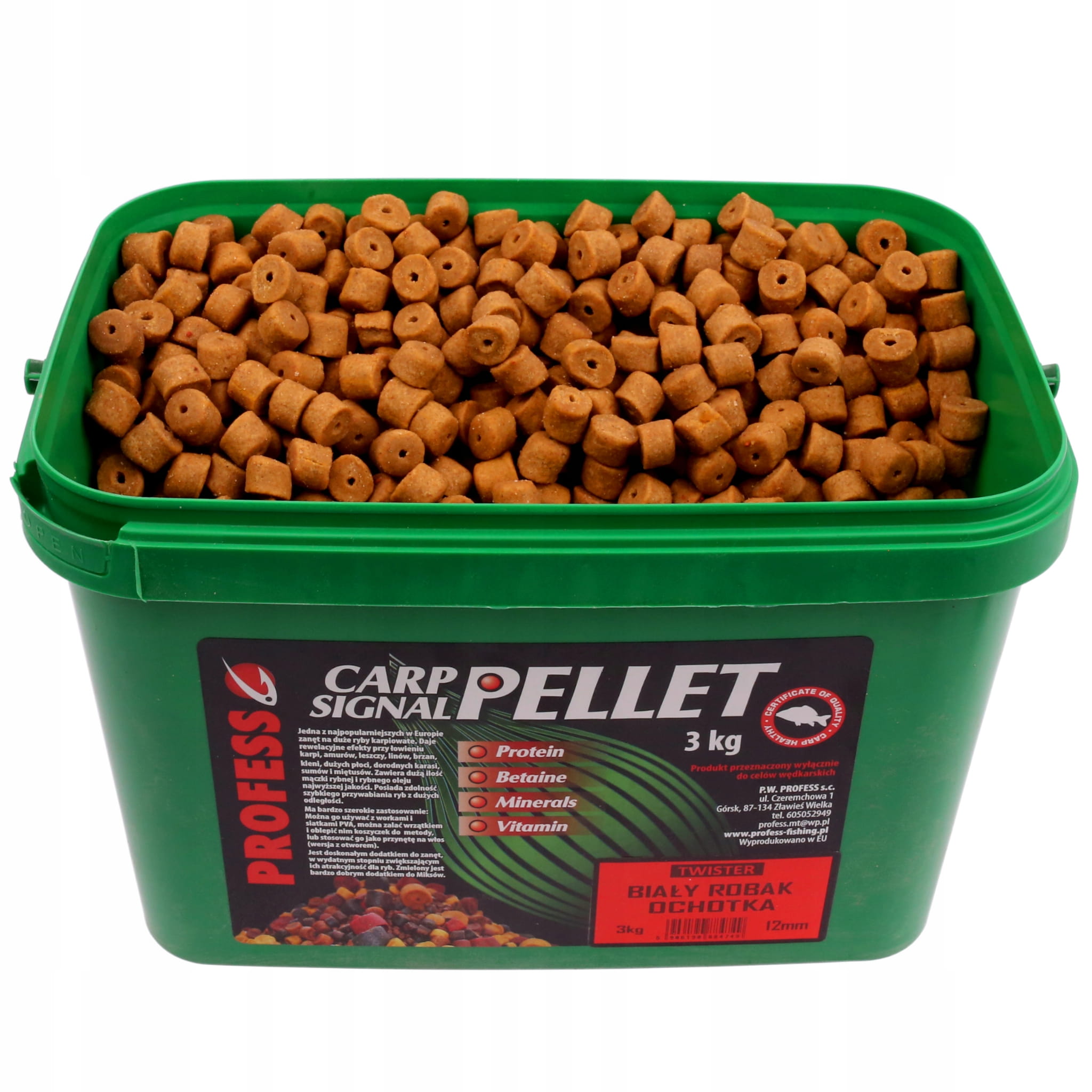 Pellet zanętowy 12mm PROFESS TWISTER 3kg - BIAŁY ROBAK / OCHOTKA