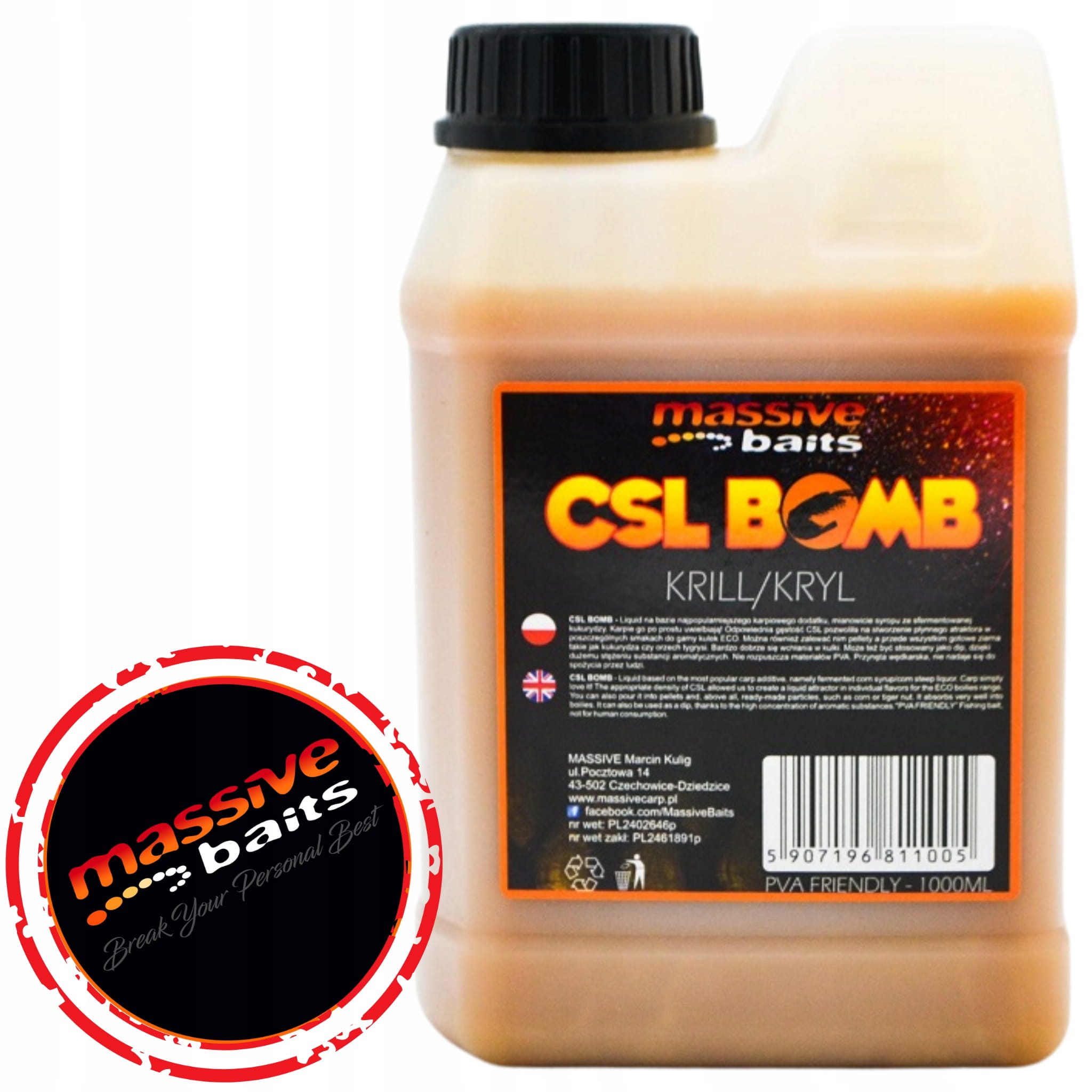 Zalewa MASSIVE BAITS CSL BOMB 1L - KRILL / KRYL