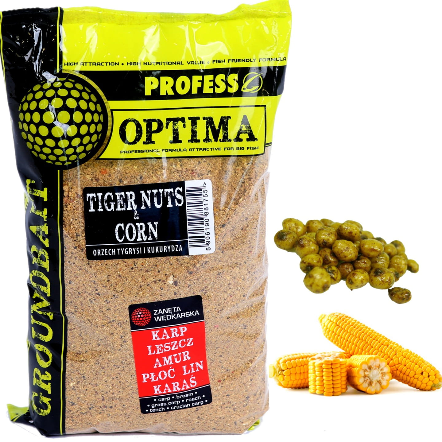 Zanęta Profess Optima 1kg -ORZECH TYGRYSI + KUKURYDZA