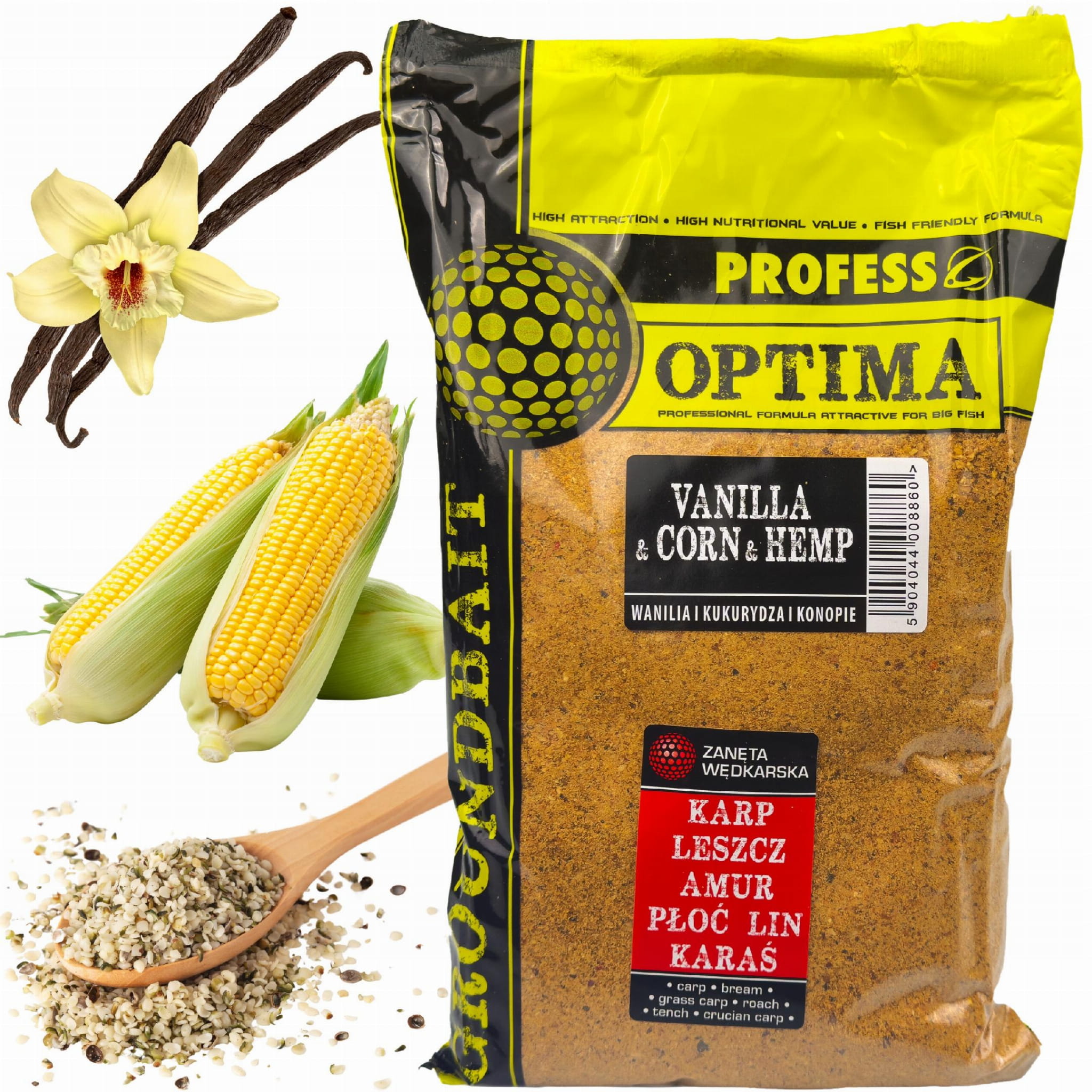 Zanęta PROFESS OPTIMA 1kg WANILIA / KUKURYDZA / KONOPIE